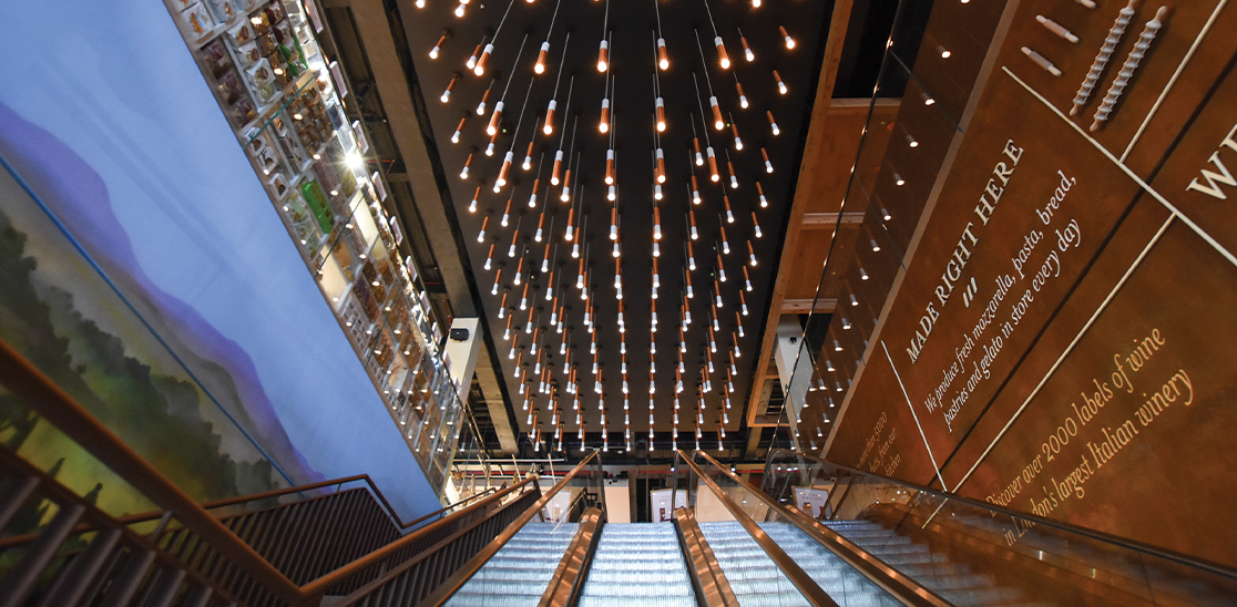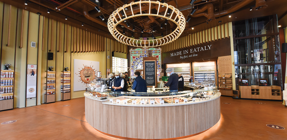 Čeprav je pandemija pospešila spletne nakupovalne in tehnološke trende v segmentu trgovin z živili za vsakdanjo rabo, Eataly dokazuje, da še vedno velja, da so taktilne izkušnje s hrano pomembne in da je gostoljubnost ključna za ustvarjanje navdihujočih fizičnih prodajnih mest.