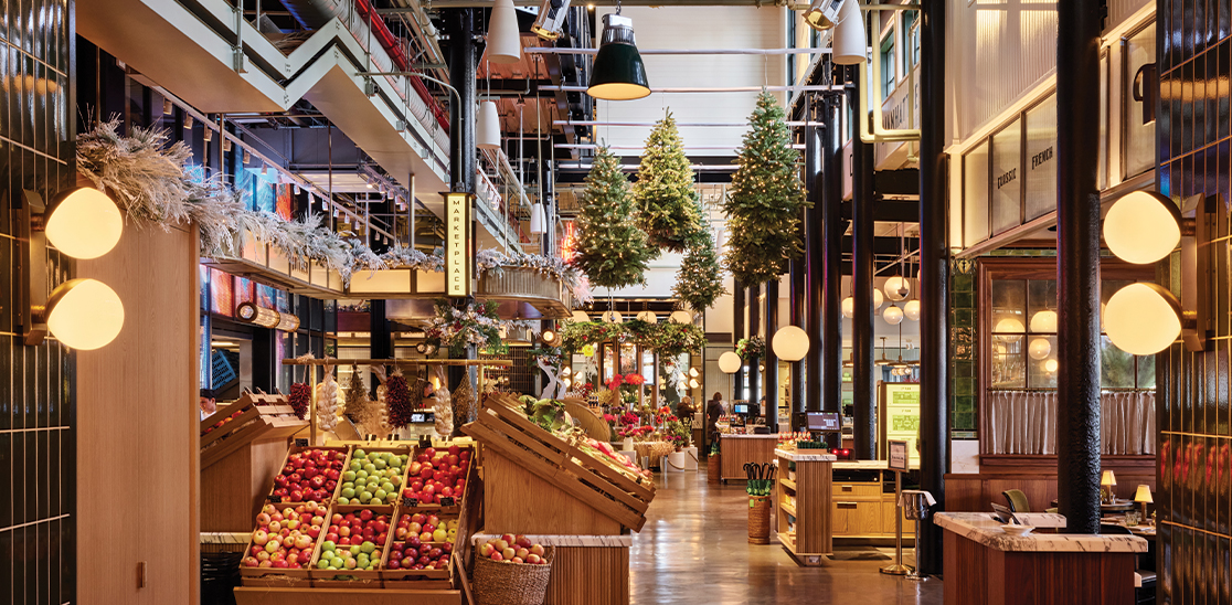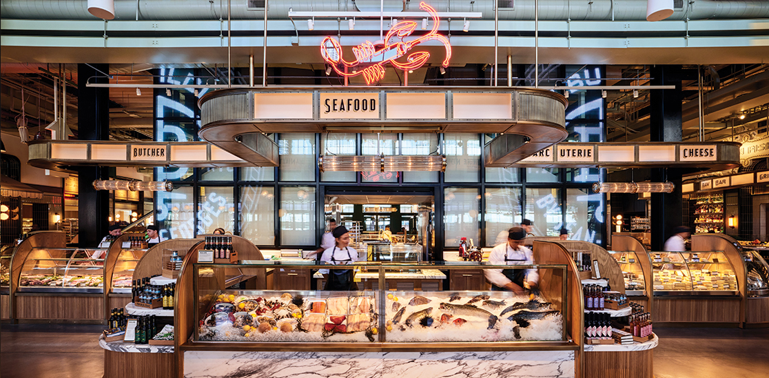 S čudovitim dizajnom interierja avtorja Romana in Williamsa ter izjemno predstavitvijo izdelkov, ki jih je oblikovala londonska agencija Kada Design, ta brezhiben tržni prostor s 5.000 kvadratnimi metri vsebuje izbor skrbno izbranih specialnih prehrambenih izdelkov in sladkarij, pa tudi kaviar bar, mesnico, ribarnico in trgovino s sirom.